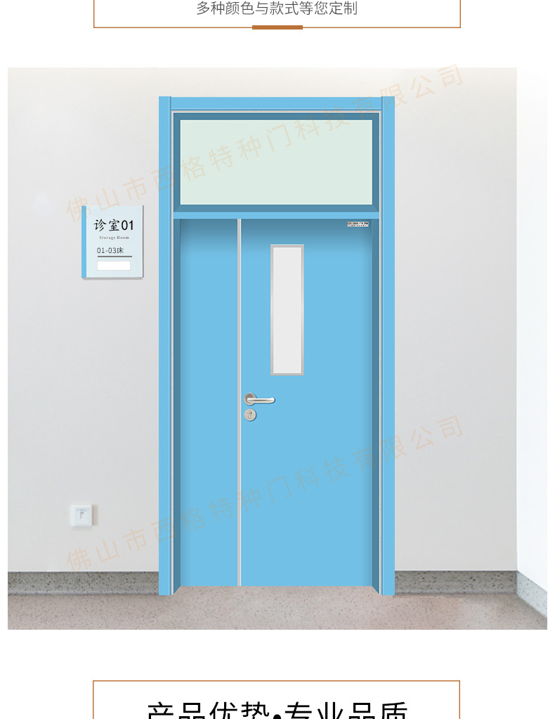 產品簡介:chnsige西格特種門,專業(yè)生產病房門,醫(yī)院病房門,醫(yī)院病房木門,病房木門,木質病房門,鋼質病房門,多鐘款式、顏色,尺寸可定制。